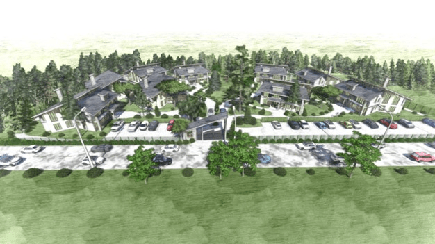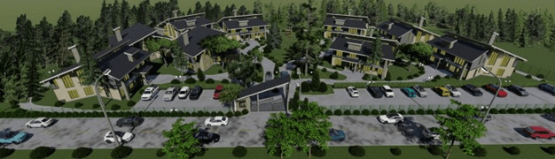 area of 425 square meters (4,575 sq. ft.). Designed without fences around individual units,